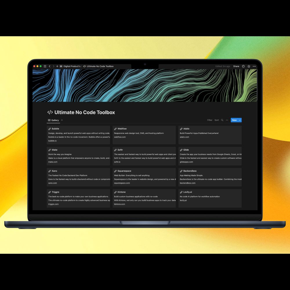 Looking to build your own website, app, or other digital product but don't want to spend countless hours learning how to code? With the "No Code App Library", you'll have access to over 200 different tools that allow you to create everything from landing pages to e-commerce sites without writing a single line of code. Each entry in the library includes the name of the tool, a link to where you can find it online, a short deck with key features and benefits, and a brief description of how the tool works. With this wealth of information at your fingertips, you'll be able to quickly find the right tool for your needs and start building right away. Whether you're a small business owner, freelancer, or just someone looking to try your hand at building digital products, the "No Code App Library" has everything you need to get started. So why wait? Get your copy today and start building your dream project without ever touching a line of code! If you're interested in staying up-to-date on the latest AI news, trends, and tools, be sure to follow us on social media! I regularly share FREE Notion templates, articles, insights, and industry updates on my accounts, so you won't want to miss out. Here are links to our accounts: Follow the opportunities β Join me on my Twitter journey!Free content and tutorials β Jump to my Facebook GroupAre u use Instagram? β Follow meDid it benefit you? β Leave a short testimonial Thanks for your support, and let's connect on social media! π€π
