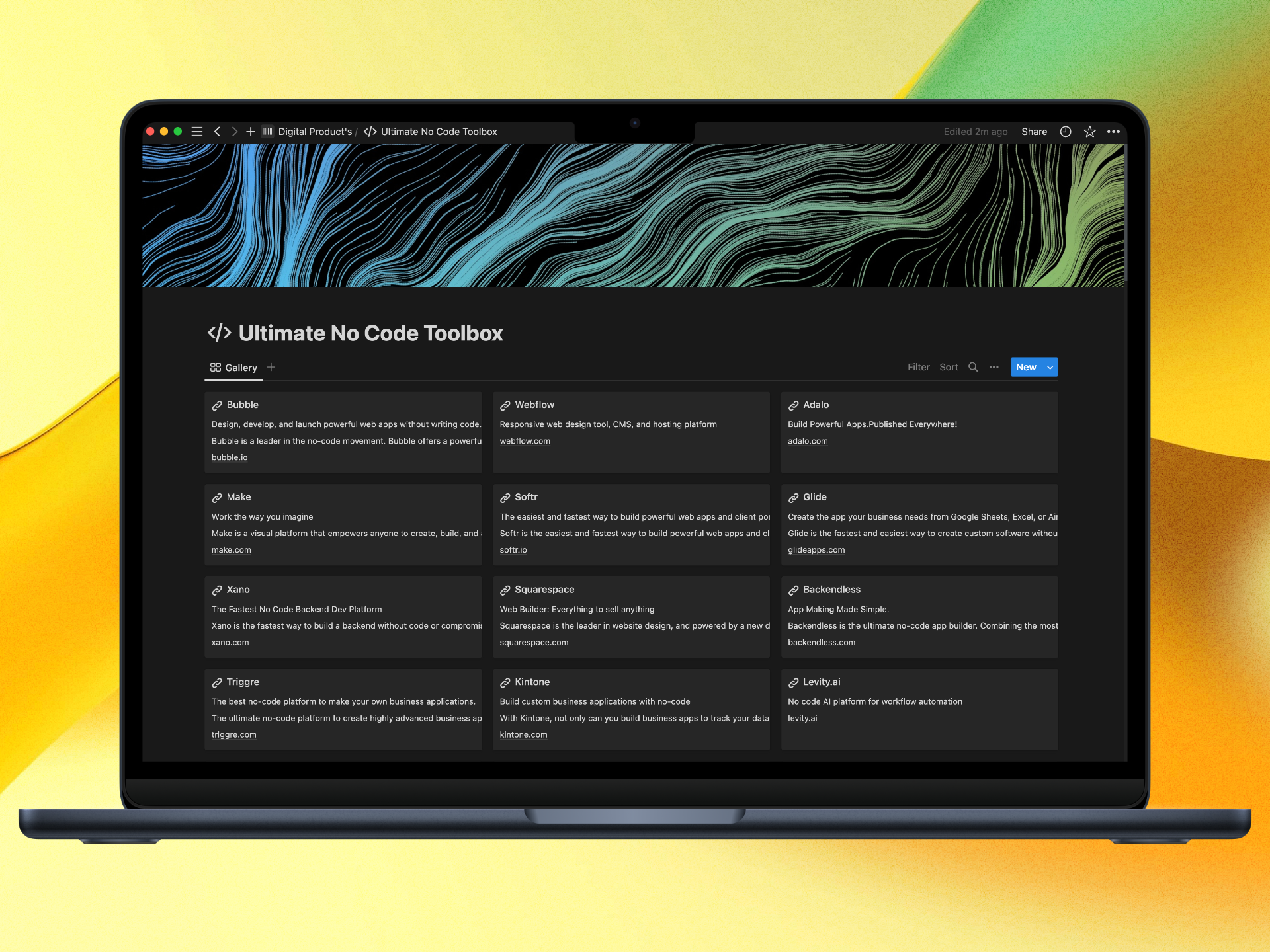 Looking to build your own website, app, or other digital product but don't want to spend countless hours learning how to code? With the "No Code App Library", you'll have access to over 200 different tools that allow you to create everything from landing pages to e-commerce sites without writing a single line of code. Each entry in the library includes the name of the tool, a link to where you can find it online, a short deck with key features and benefits, and a brief description of how the tool works. With this wealth of information at your fingertips, you'll be able to quickly find the right tool for your needs and start building right away. Whether you're a small business owner, freelancer, or just someone looking to try your hand at building digital products, the "No Code App Library" has everything you need to get started. So why wait? Get your copy today and start building your dream project without ever touching a line of code! If you're interested in staying up-to-date on the latest AI news, trends, and tools, be sure to follow us on social media! I regularly share FREE Notion templates, articles, insights, and industry updates on my accounts, so you won't want to miss out. Here are links to our accounts: Follow the opportunities β Join me on my Twitter journey!Free content and tutorials β Jump to my Facebook GroupAre u use Instagram? β Follow meDid it benefit you? β Leave a short testimonial Thanks for your support, and let's connect on social media! π€π